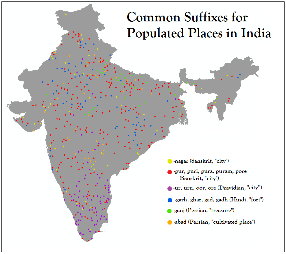 Common Suffixes for Populated Places in India, and some simple etymology thereof