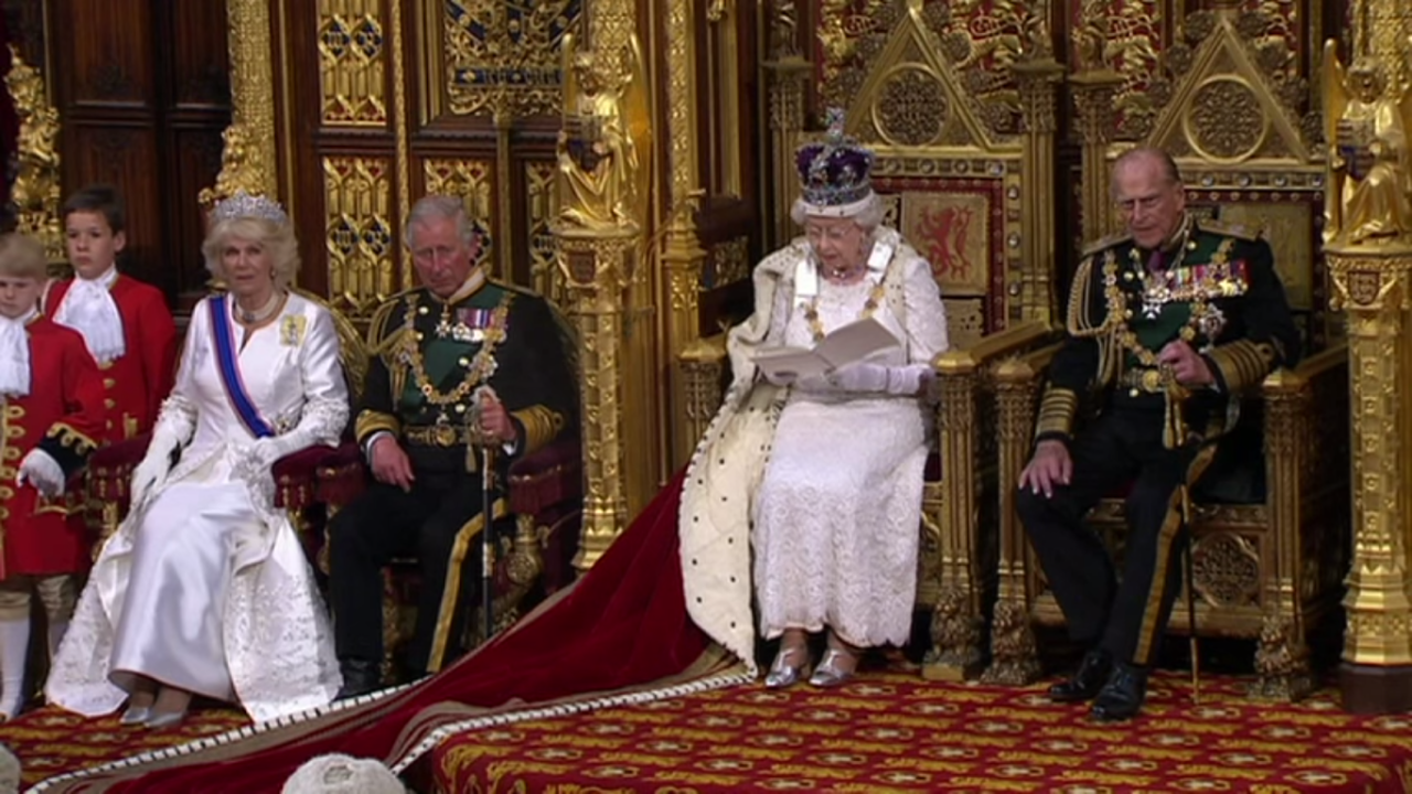 The Queen opening Parliament today. She offered her praises for Tory austerity policies saying, “Britain should live within its means.”