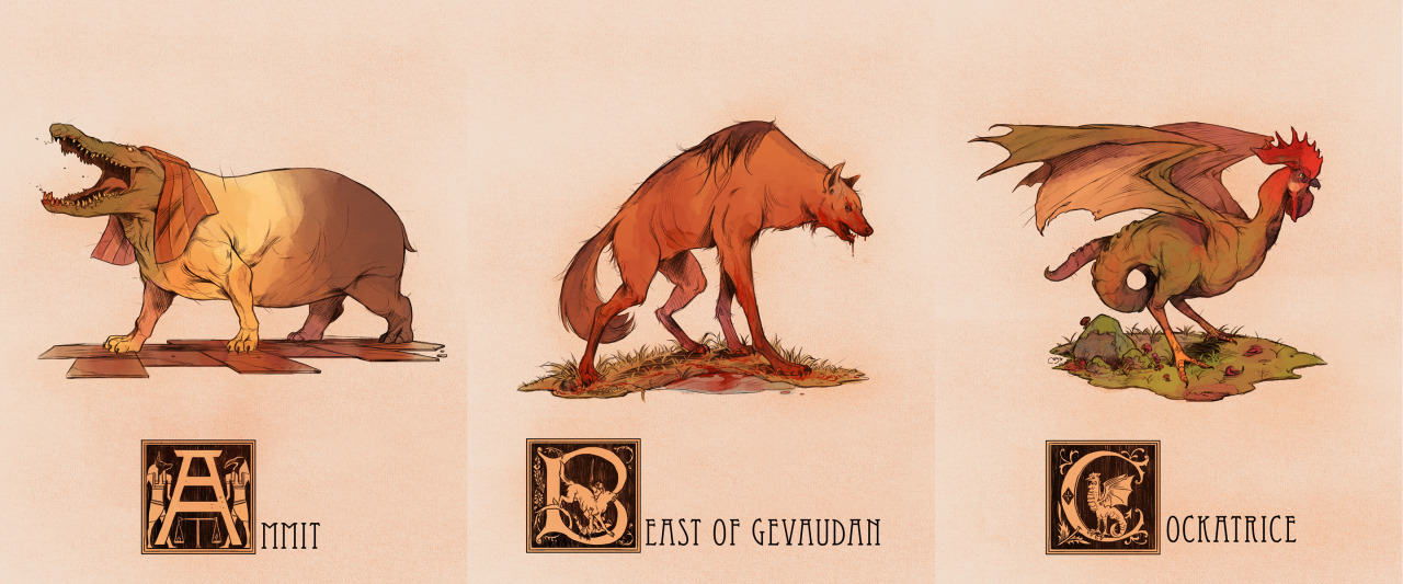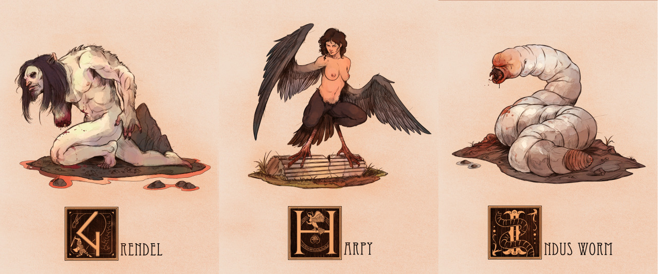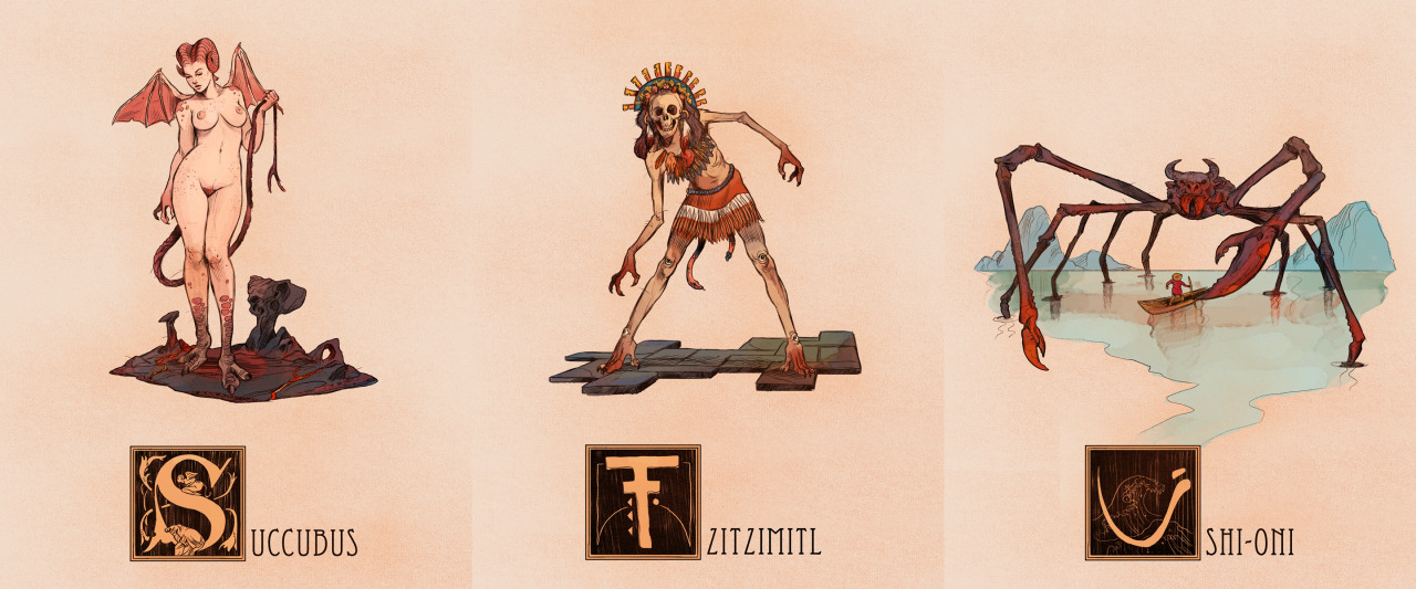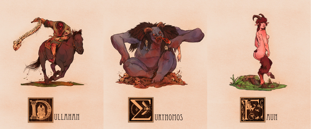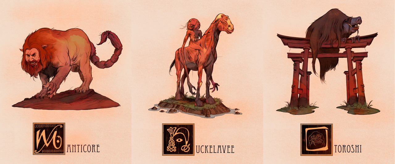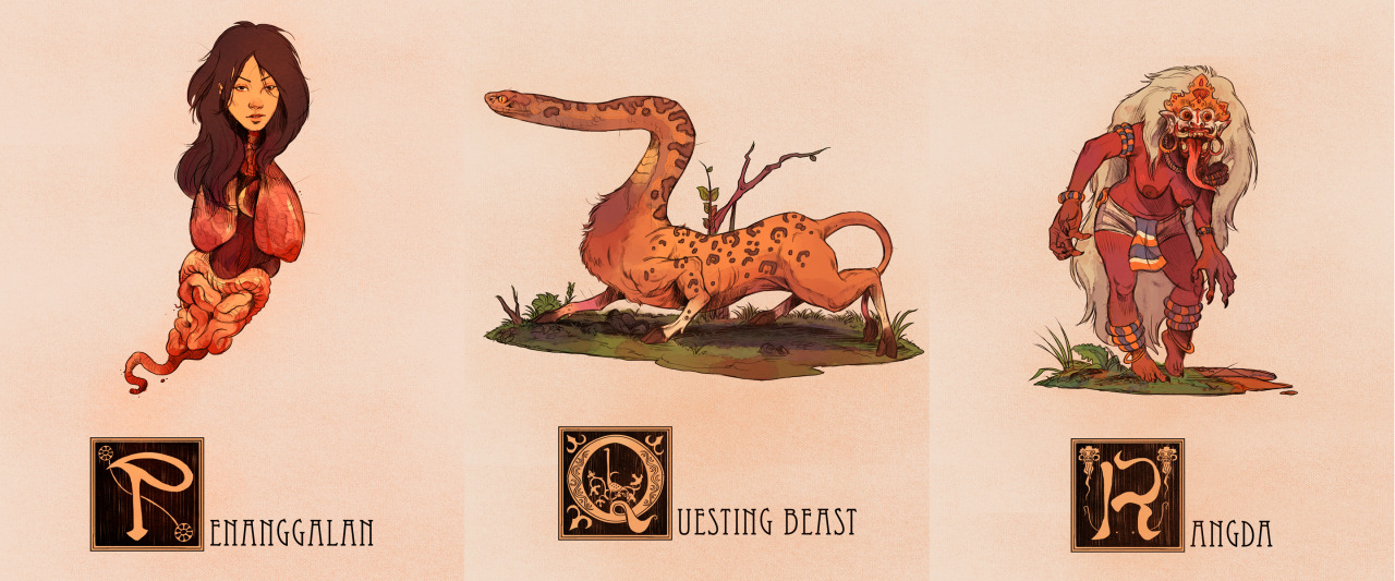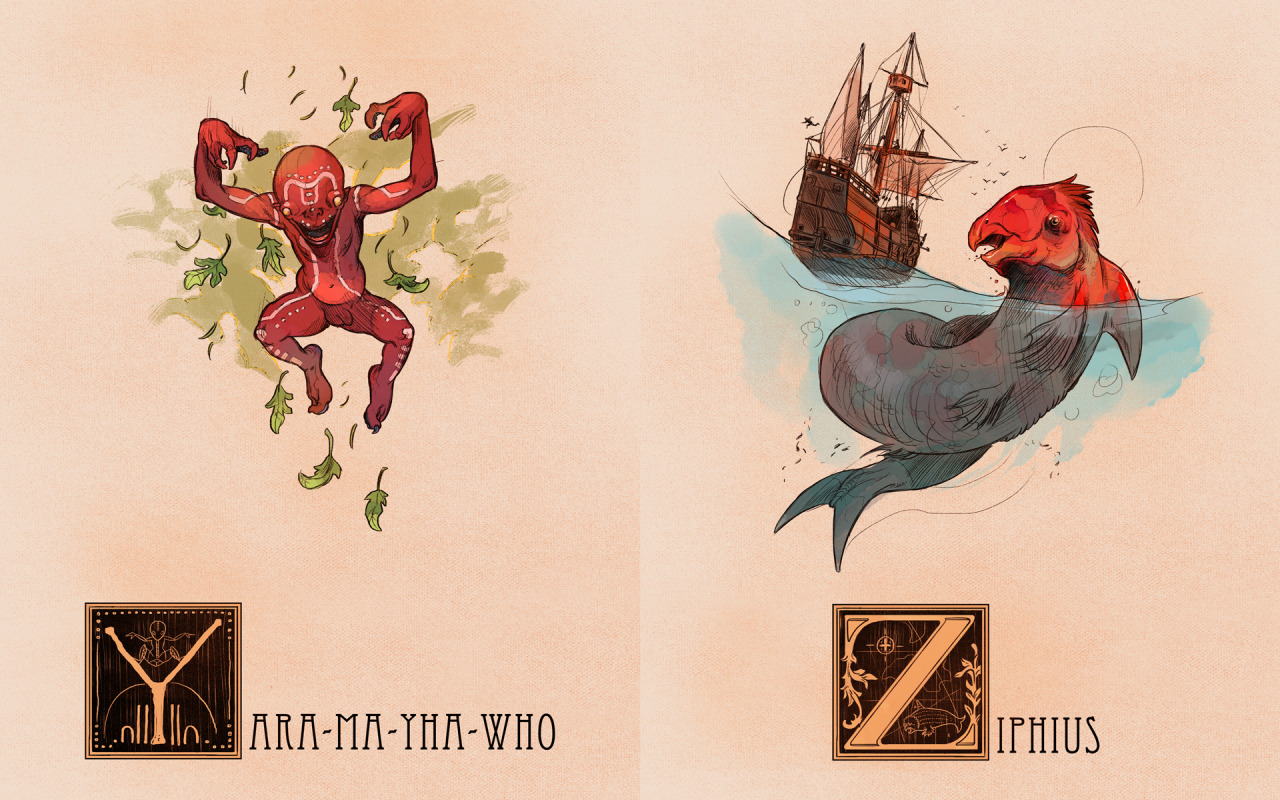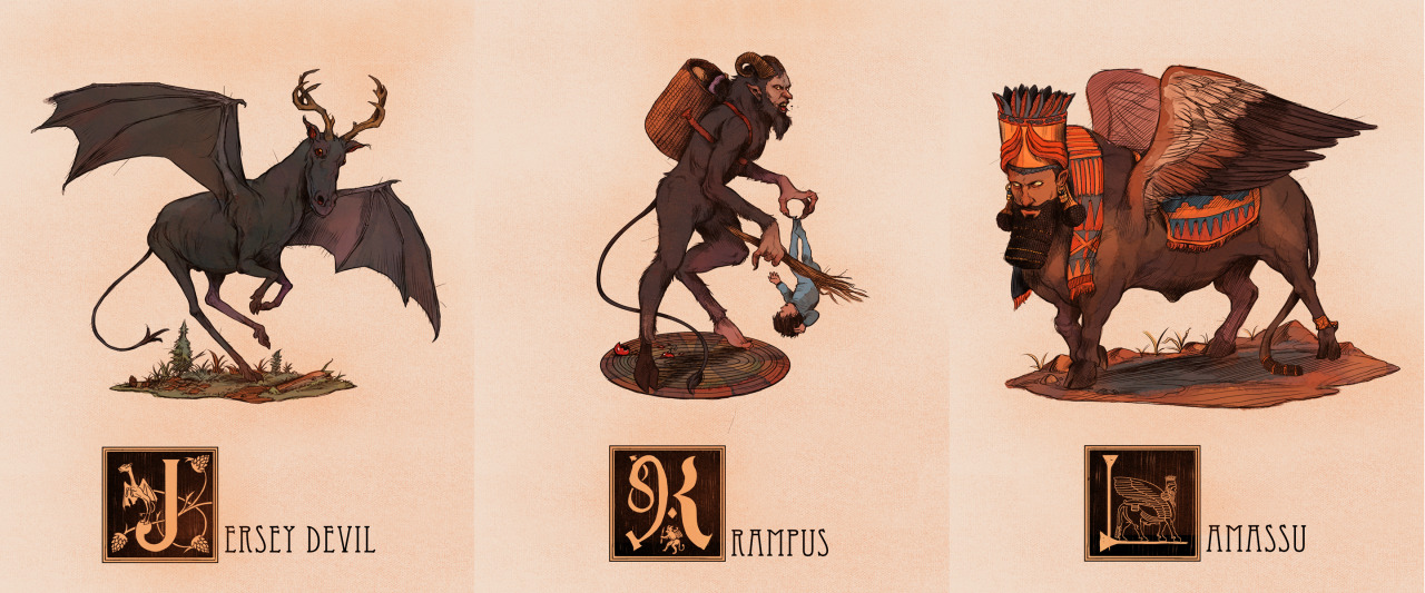 They’re all here! I took it upon myself to create an illustration of a Mythological creature or character for every letter of the alphabet, trying to span across a multitude of cultures and creature-types. Another thing I wanted to accomplish with this project was to find some the more unusual and/or obscure creatures that don’t get as much representation in artwork. Individual Tumblr Posts with said creatures’ descriptions are below.