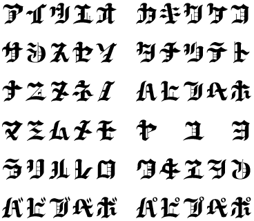 It’s a katakana font (named “ゴウラ”) designed to look like Olde English fancy print This must be the Japanese equivalent of that...