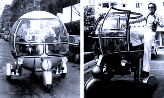 Pussycar Automodule, 1968. Designed by Jean Pierre Ponthieu and billed as ‘The Car of the Year 2000′, the spherical Automodule...