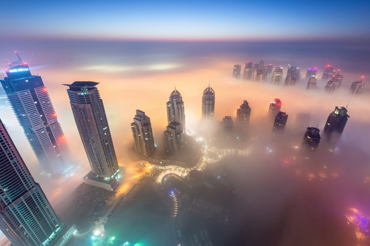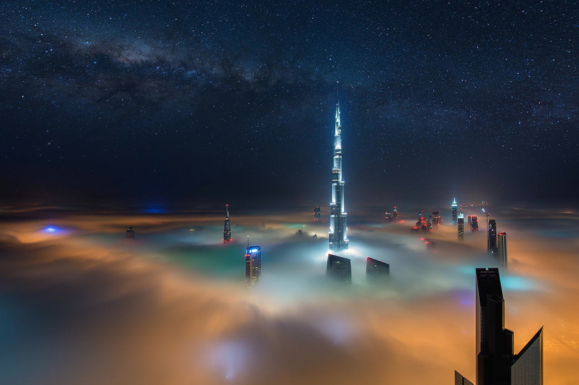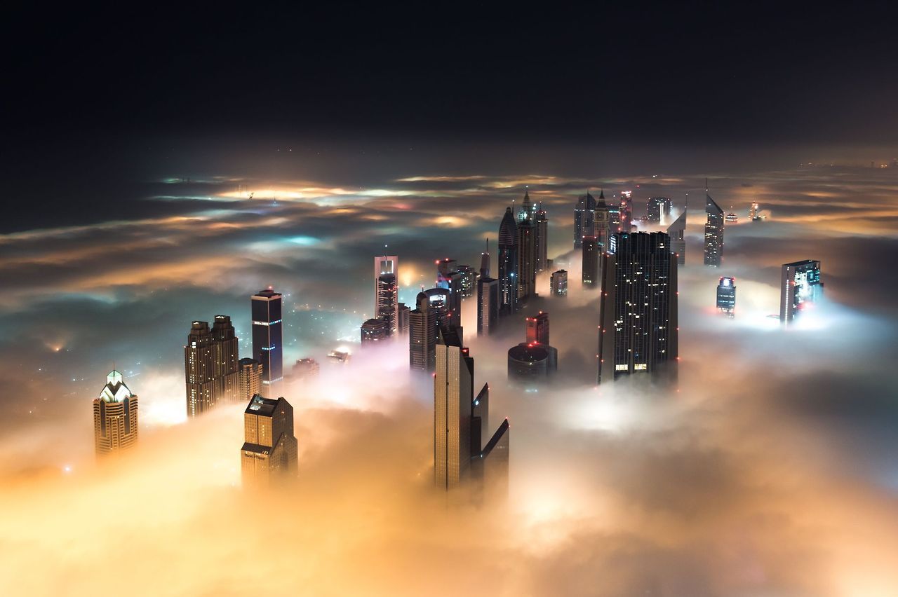 photos from dubai’s 828 meter tall burj khalifa (save the first and last photos, which show the building) by (click pic) daniel cheong, karim nafatni, bjoern lauen and dave alexander. duabai only experiences this in september and march, when seasonal changes in temperature creates an abundance of early morning fog. (see also: fog over new york, london and chicago)