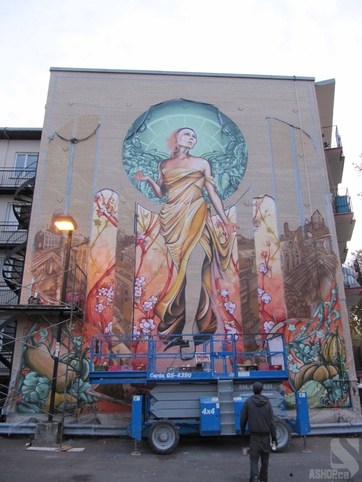 Made with 50 different colors and over 500 cans of graffiti, these artists recently produced this stunning Goddess on the side of a 5-story high apartment building. Your graffiti is inferior.