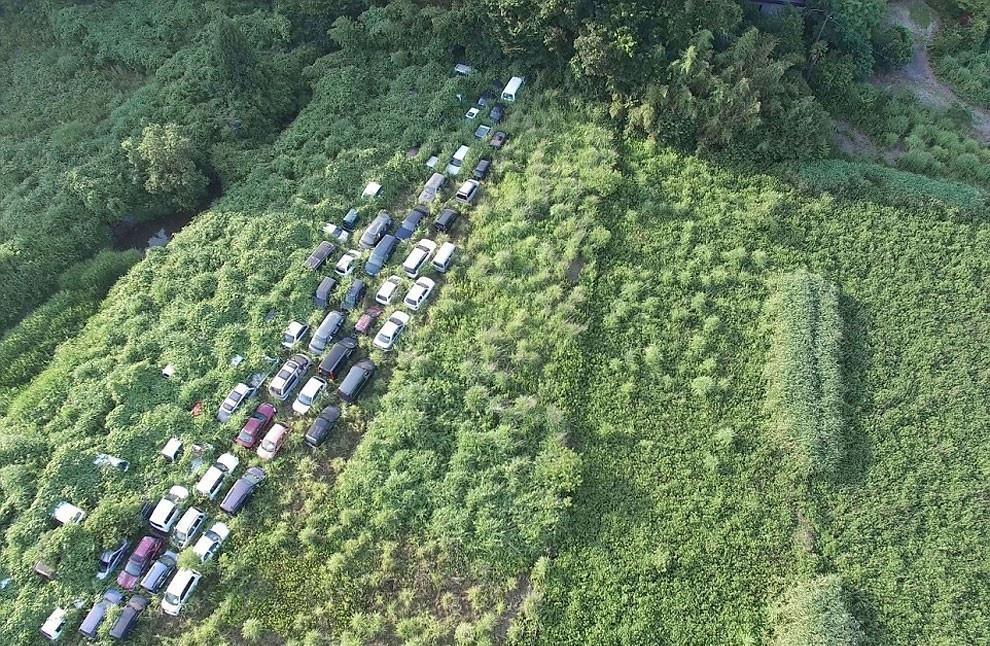 Arkadiusz Podniesinski’s aerial photograph of cars abandoned in the exclusion zone around Fukushima Daiichi nuclear power...