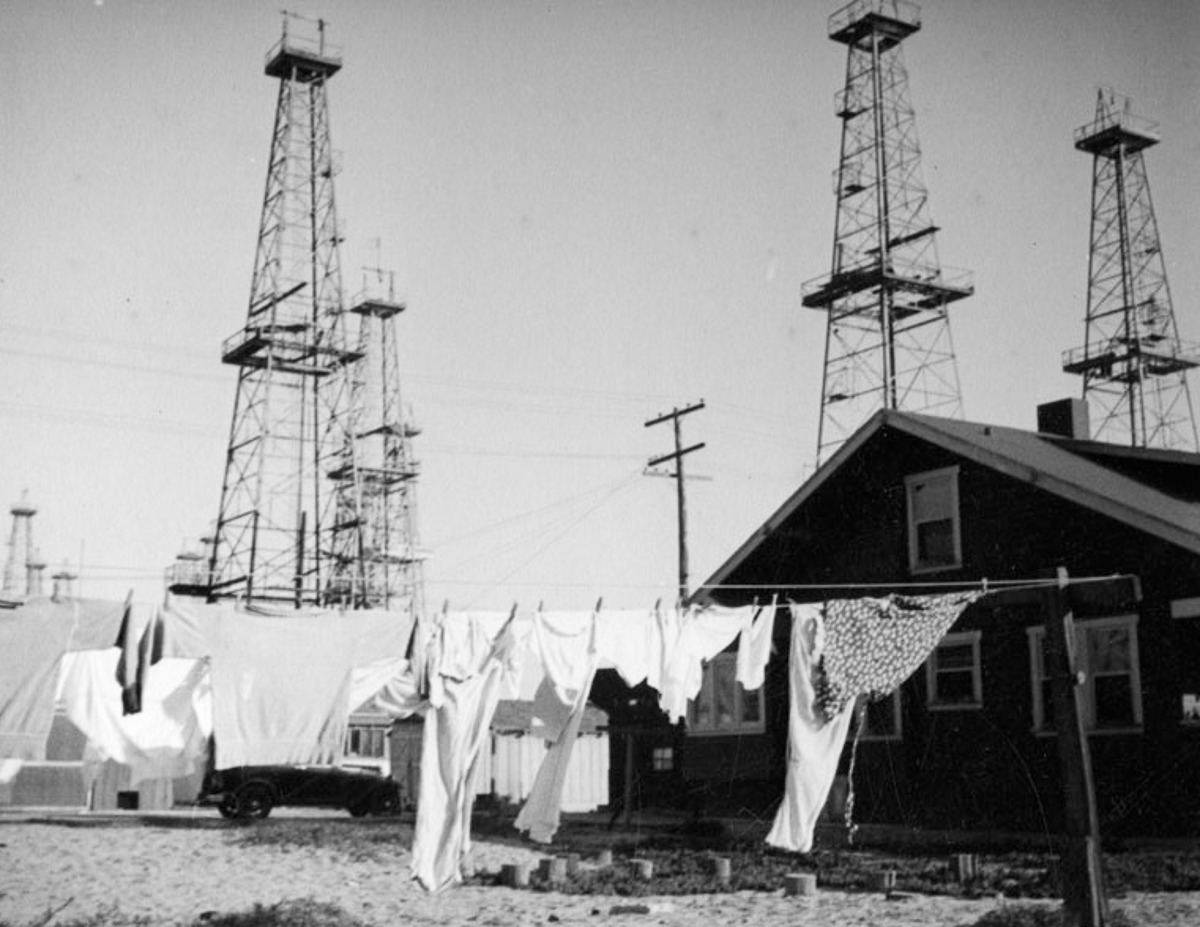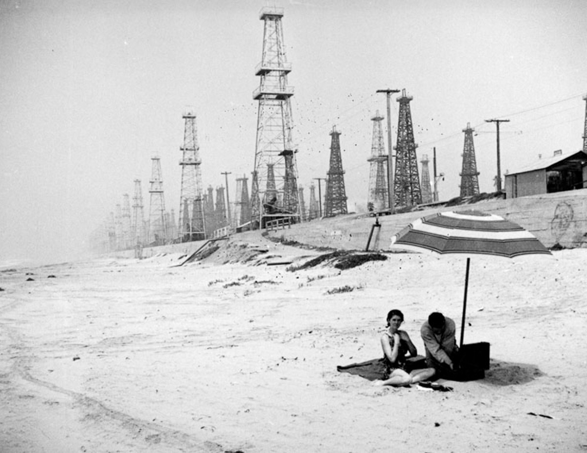 In places such as Venice, California (now known as Marina del Rey), oil derricks ran right up to the shore, mingling with residential neighborhoods and pristine beaches.