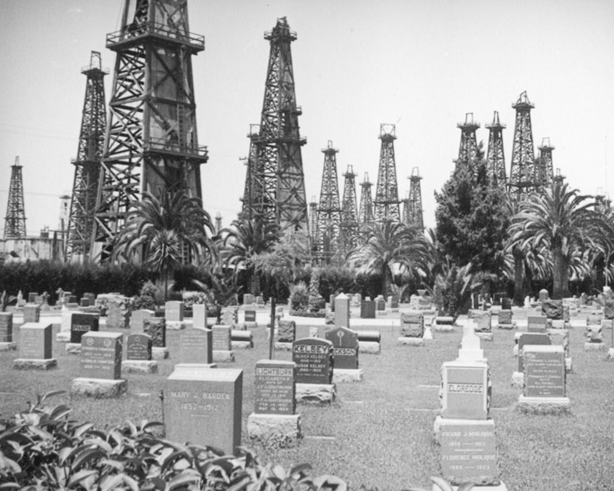 By 1920, California was producing 77 million barrels of oil a year, and vast stretches of the state were occupied by derricks, drilling rigs and refineries.