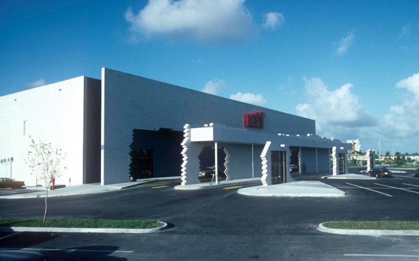 BEST Products was a chain of catalog showroom retail stores founded in 1957, notable for their facades designed by SITE (”Sculpture In The Environment”) in the 1970s and early 1980s. They filed for bankruptcy in 1997 and currently all but one of their buildings have been either demolished or altered to remove their distinctive features; the one exception is their “forest building” which now serves as a church.