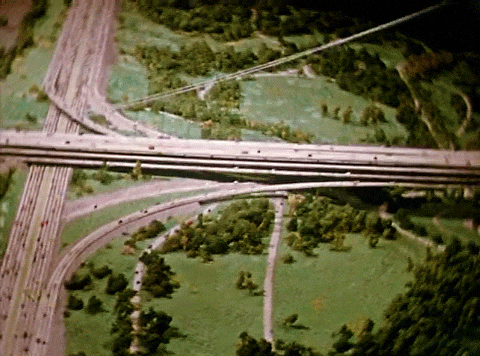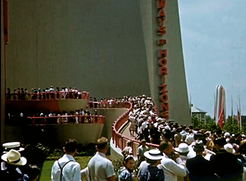 After the simulated flight over this world of 1960, visitors exited into a full scale replica of one of the intersections seen in the diorama, which included elevated sidewalks. Upon exiting, visitors were given a small pin that simply read “I Have Seen The Future” (Incidentally, I still have replicas of those on my old zazzle store!)