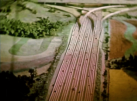 By far the most popular exhibit at the 1939 New York World’s Fair, the General Motors-sponsored Futurama (contained in its Highways and Horizons pavilion) was a gigantic diorama showcasing a proposed futuristic world of 1960, created by industrial designer Norman Bel Geddes. Unlike most utopian predictions, the Futurama turned out to be surprisingly accurate, in that it presented a country joined by a network of interstate highways which , for better or worse, did become a reality in the 50′s. Other predictions included helipads on skyscrapers, genetically modified food, and automatic highway systems.