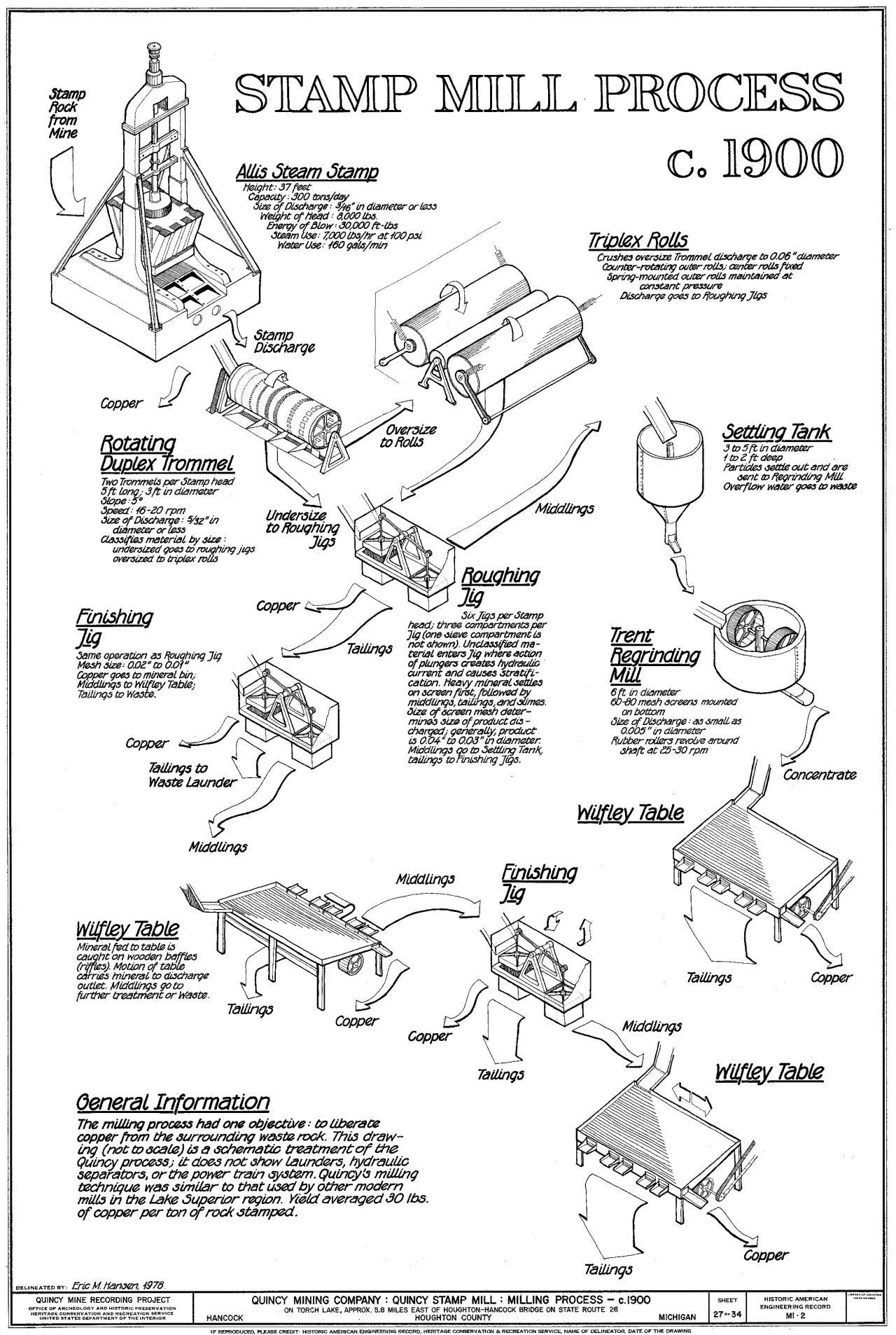 Quincy Stamp Mill Process c. 1900 Historic American Engineering Record Heritage Conservation & Recreation Service Eric M. Hansen...