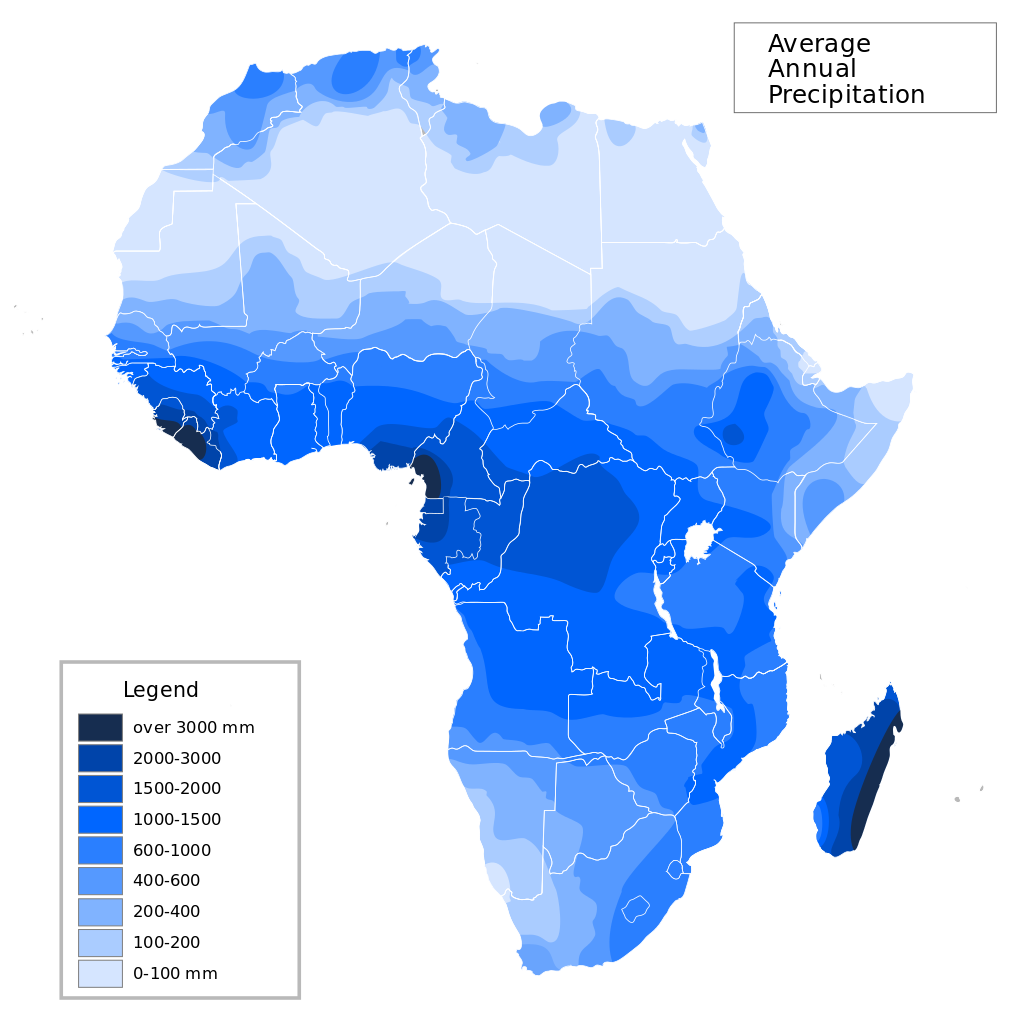 Average annual precipitation in Africa.