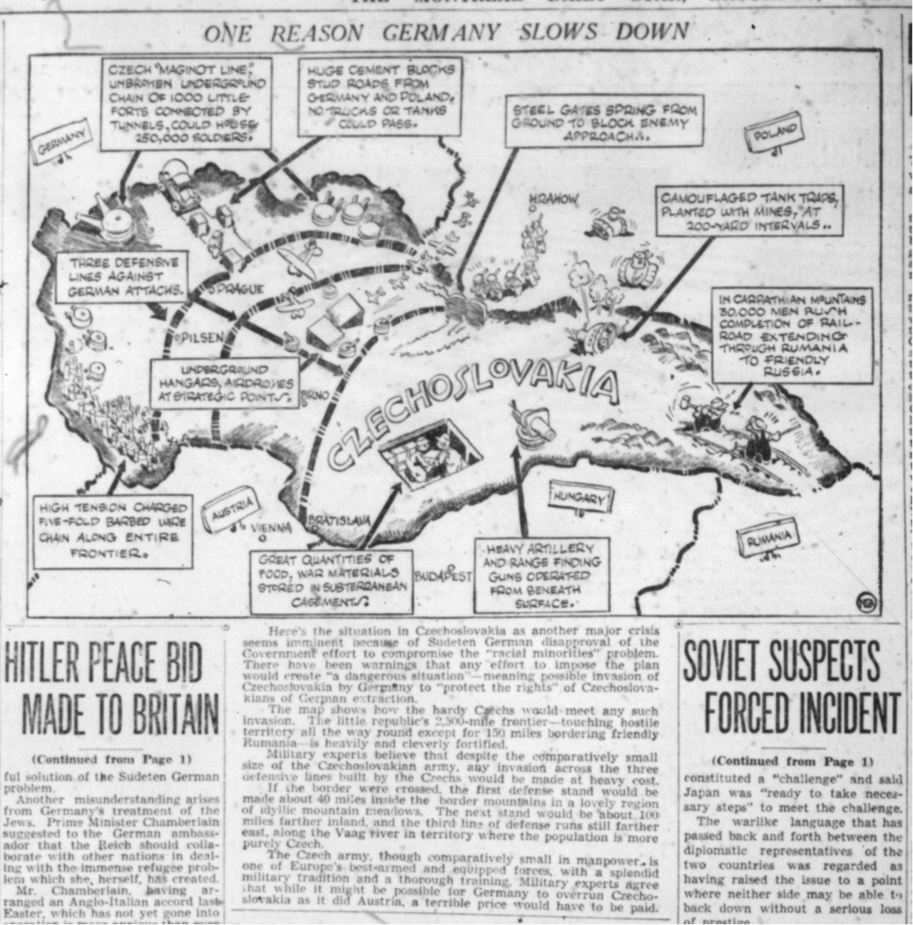 “One Reason Germany Slows Down,” Montreal Star, July 23, 1938. “Here’s the situation in Czechoslovakia as another major crisis...