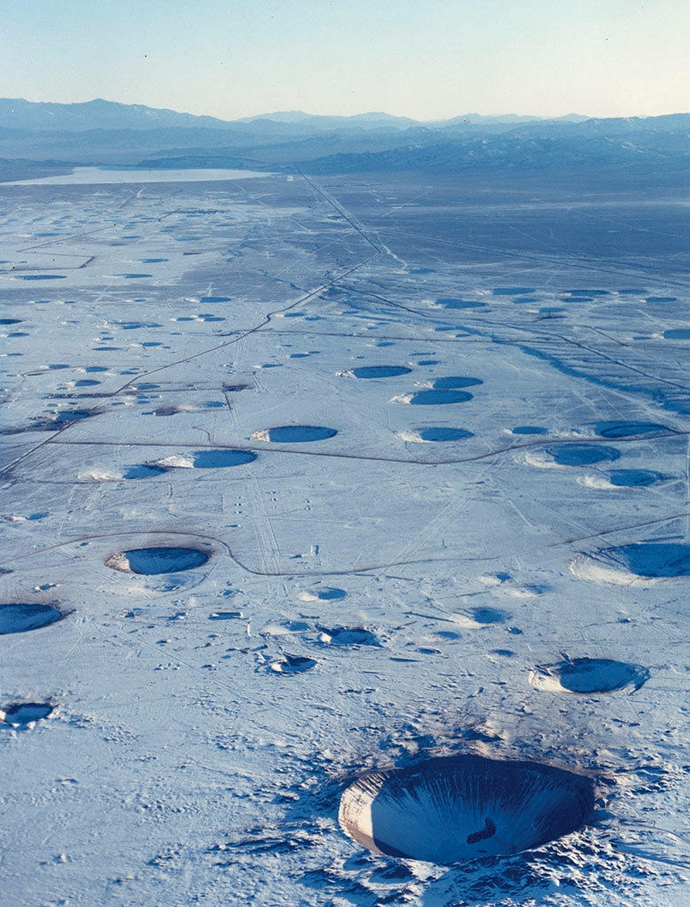 All the craters seen in the photograph are from below ground tests and are collapse features from subsidence into the largely vaporized detonation zone.