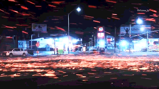 An early morning palm tree fire on Christmas day in Los Angeles.