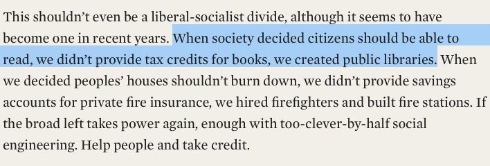 This is flatly, literally, directly untrue. Tax-funded public libraries and fire companies didn’t catch on until the late 19th century, but society had supported literacy and fire suppression long before that, through indirect subsidy.