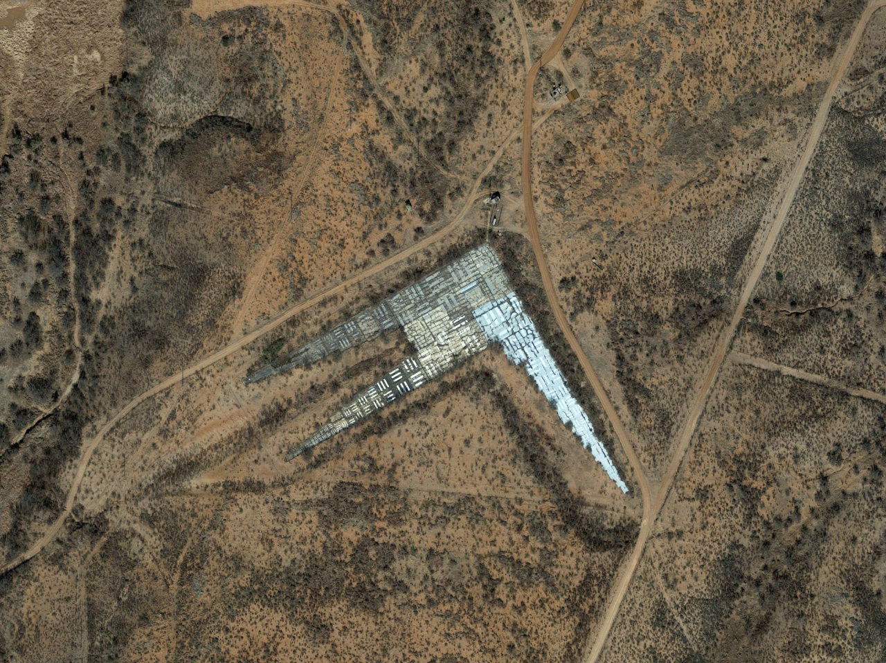 There are dozens of aerial photo calibration targets across the USA, like this expanded tri-bar array at Fort Huachuca in Arizona, USA.