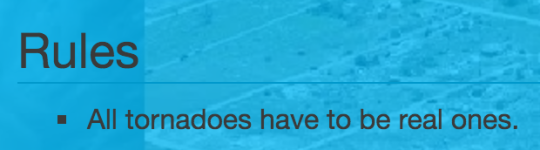 i have no authority as a human being to disrupt the harmony and sincerity of the making-up-tornadoes community but someone needs to crossreference with me that an annual multi-season tournament bracket for made-up-tornadoes really happens. just for the sake of my brain staying here on earth