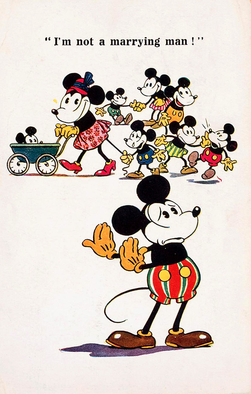 “I’m not a marrying man!” 1930s Mickey Mouse postcard
