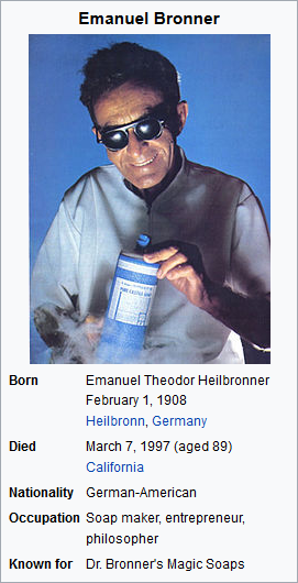 i don’t know what i expected the “dr. bronner” of dr. bronner’s soaps to look like but this seems about right to me