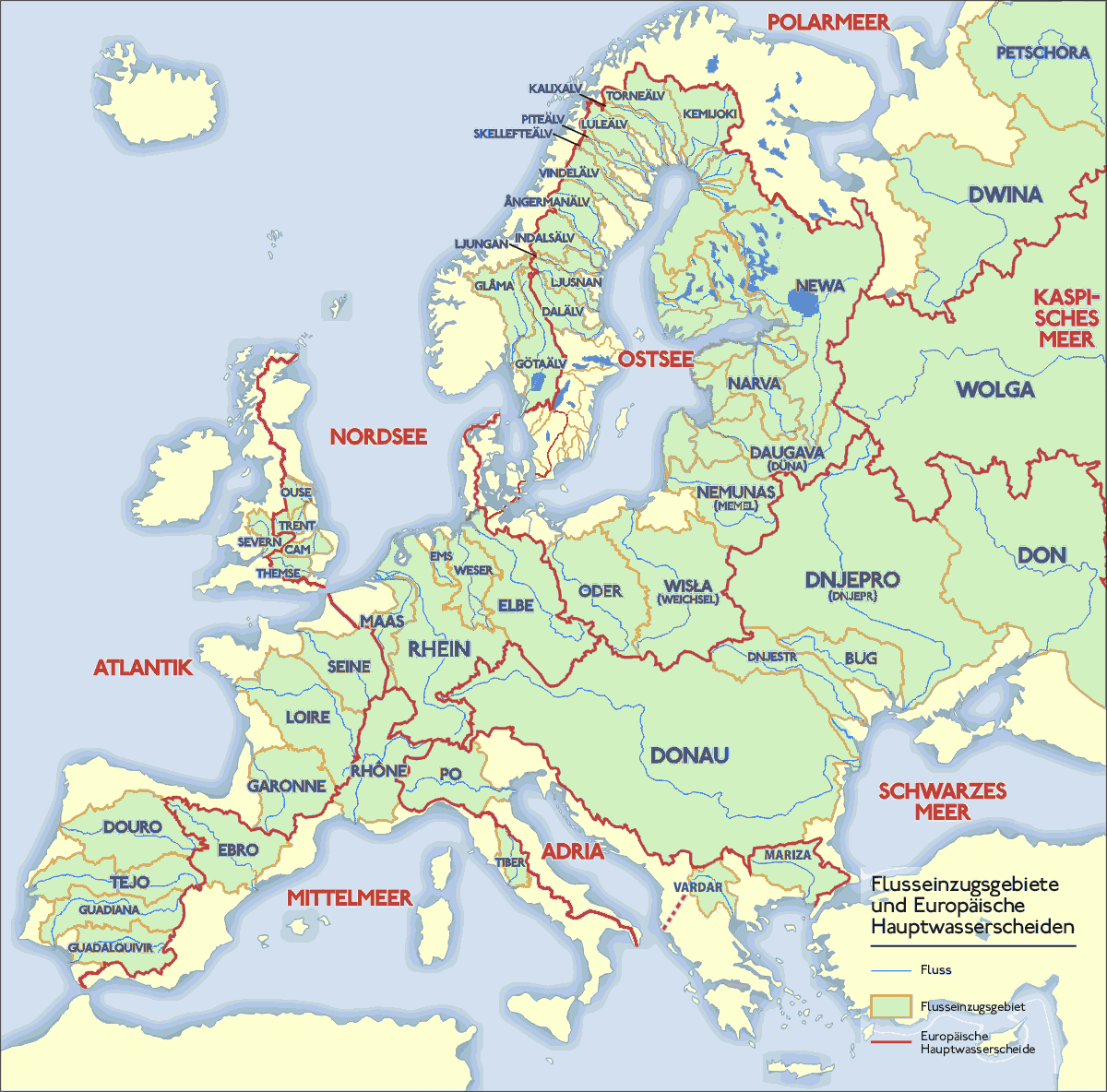 Drainage basins of European rivers.