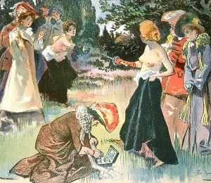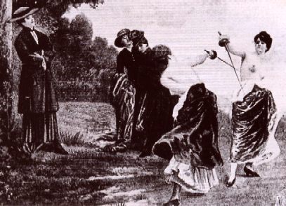 With the precautions Baroness Lubinska recommended, the topless women duelists were less likely to suffer from an infection; indeed, it was a smart idea to fight semiclad. Given the practicality of the baroness’ suggestion and the “emancipated” nature of the duel, it was agreed that the women would disrobe—after all, there would be no men present to ogle them. For the women, the decision to unbutton the tops of their dresses was not sexual; it was simply a way of preventing a duel of first blood from becoming a duel to the death.