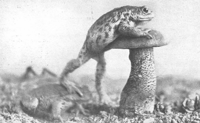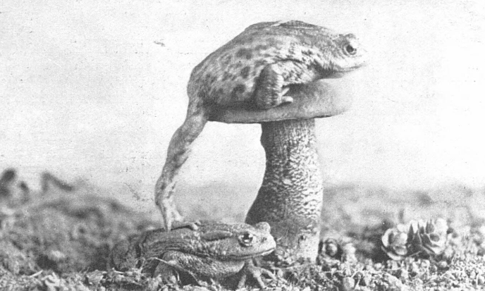 This is the first time in my life I ever saw a toad using a toadstool as a stool