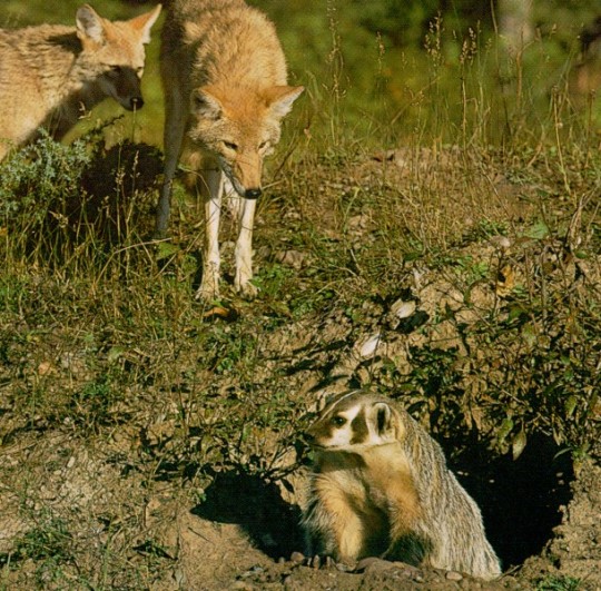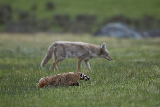 one of my favorite things is how badgers and coyotes will hunt cooperatively. as in not just like happening to go after the same thing at the same time but actually combining efforts to bring down prey; coyotes are faster and can chase down prey species, while badgers are adept at digging them out of their burrows