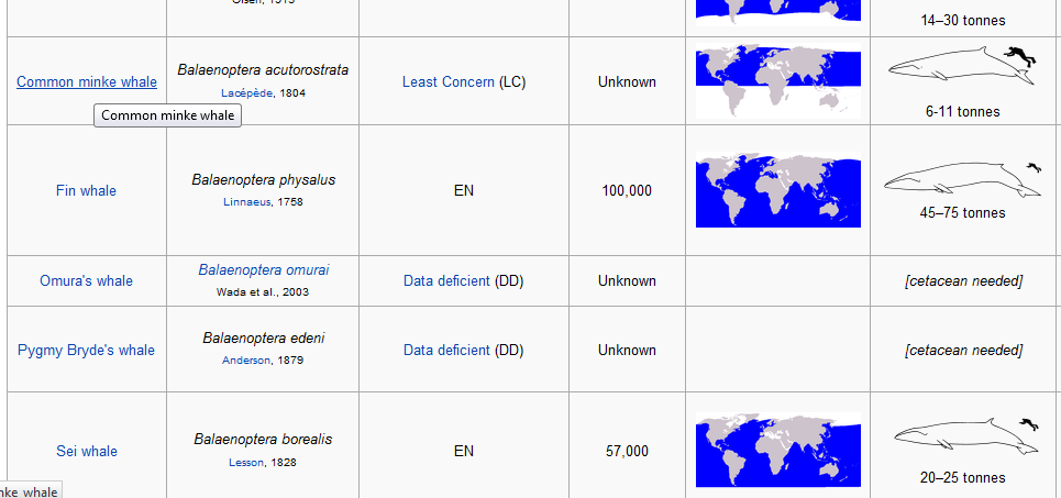 i’m looking up whales for a project on wikipedia and do you know what this PIECE OF JUNK page “list of cetaceans” says for the whales they don’t have neat drawings of