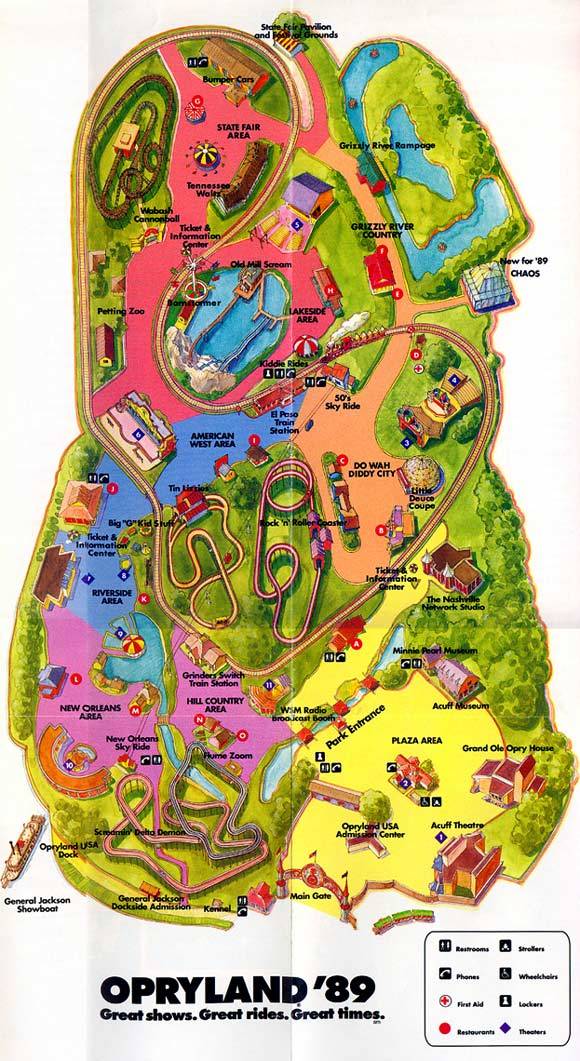 Opryland Amusement Park Map, Nashville, 1989.