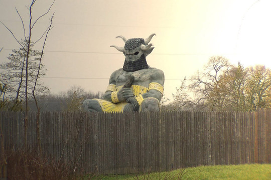 This statue is a couple miles from where I live, just sitting in someones backyard. It was in two crappy Atlantis sword-and-sandal movies back in the 50′s/60′s. Then it sat on top of a bar (or club) for a few years, and then someone bought it for their house.