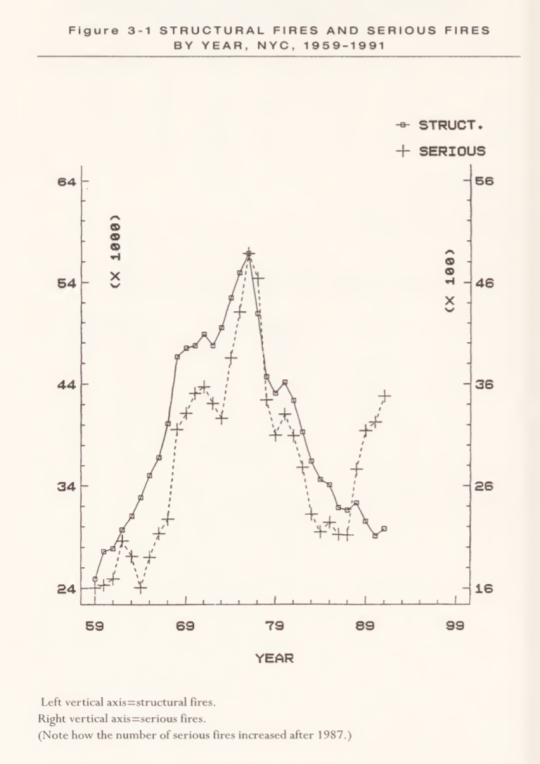 area because fire-prevention activities by municipal agencies focused there. Still, citywide, the number of structural fires per year grew consistently (figure3-1).