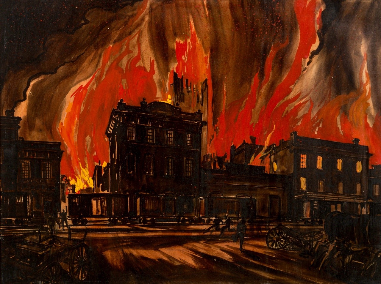 I wonder if I should count this production as a possible inspiration for Day of the Locust, the famous 1939 novel about a Hollywood matte painter working on a painting of LA burning down, as metaphor for the fact that Los Angeles is an evil city