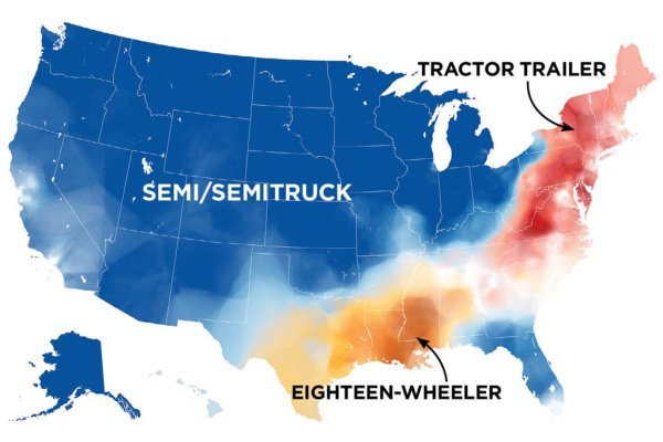Semi/Semitruck v Tractor Trailer v Eighteen-Wheeler in the United States.