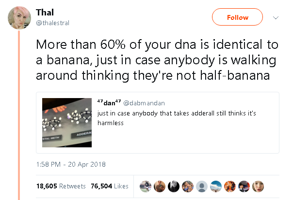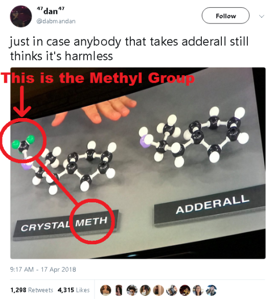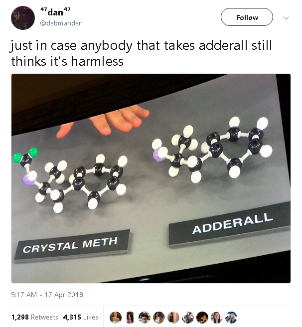 But, if anything, “adderall is a powerful stimulant closely related to meth” kind of backs up Twitter OP’s point