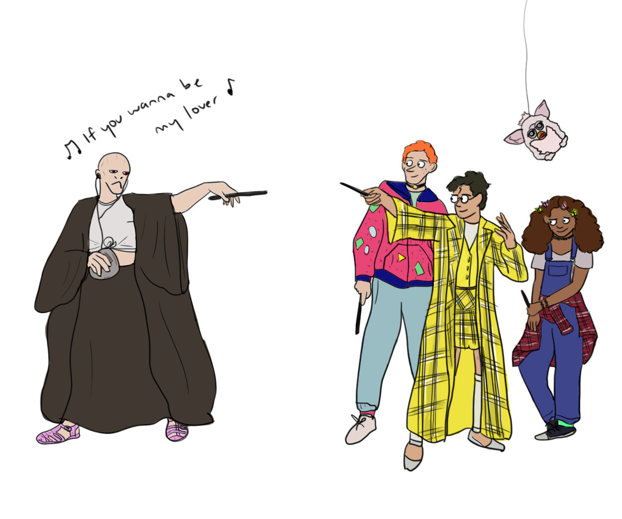 It’s the year 2030. They’re making a Harry Potter remake, not a modern adaptation but set in the original era. And it’s fucking indulgent in 90s nostalgia. Someone’s got a butterfly clip, Ron is wearing a choker, there’s muggles playing with pogs, Spice Girls is playing in the background. Voldemort is wearing a crop top.