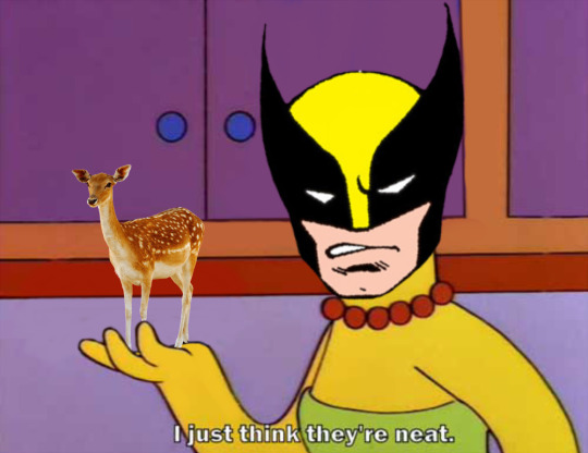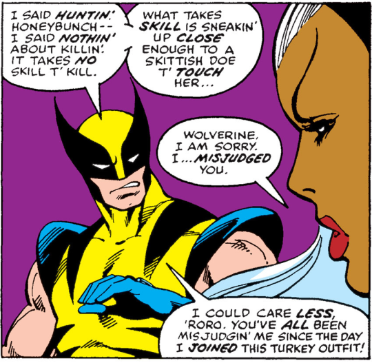 honestly this sums up wolverine so well he said he was going hunting and ororo was like “you’d kill innocent animals for...