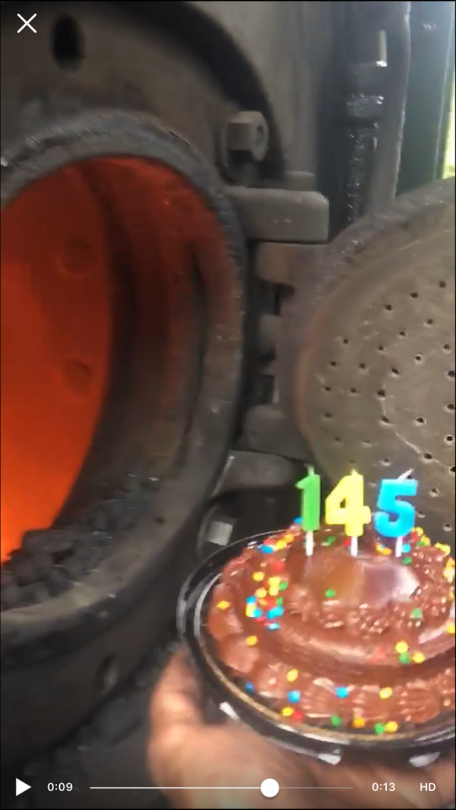 I haven’t been able to get the full video but we just celebrated one of our steam locomotives turning 145 by chucking a chocolate cake into her firebox