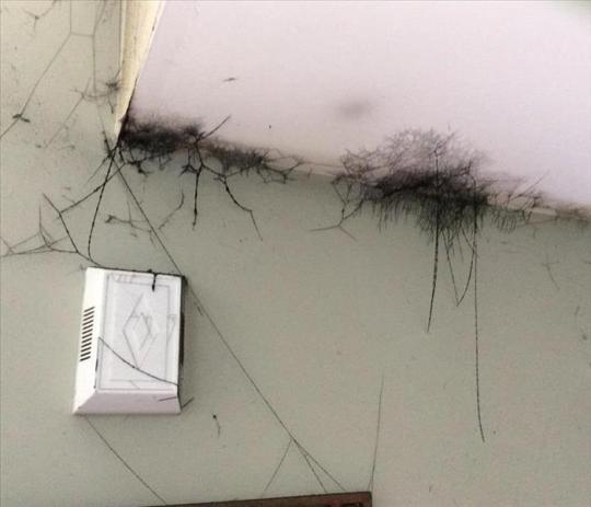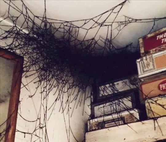 Soot tags gather after fires in areas with low circulation. They are not, as commonly believed, ash covered spider webs.