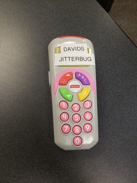 apparently my boss who is a professor at my school doesn’t have a cell phone and his coworkers were upset by this so they bought him a childs toy phone and labeled it “David’s jitterbug” (for those of you that don’t know jitterbugs are phones made for old people that have like massive buttons and shit) so the other day I walked into his office to ask him a question and he pressed a button on it which made it start loudly playing the ABCs and he said “excuse me I have to take this” and then started singing along to the ABCs while shooing me out of his office