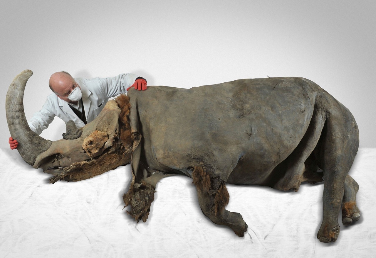 A 39,000 year old woolly rhinoceros mummy from Siberia.