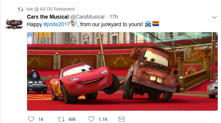 9enj1: is this saying mater and lightning mcqueen are gay wait cars the musical