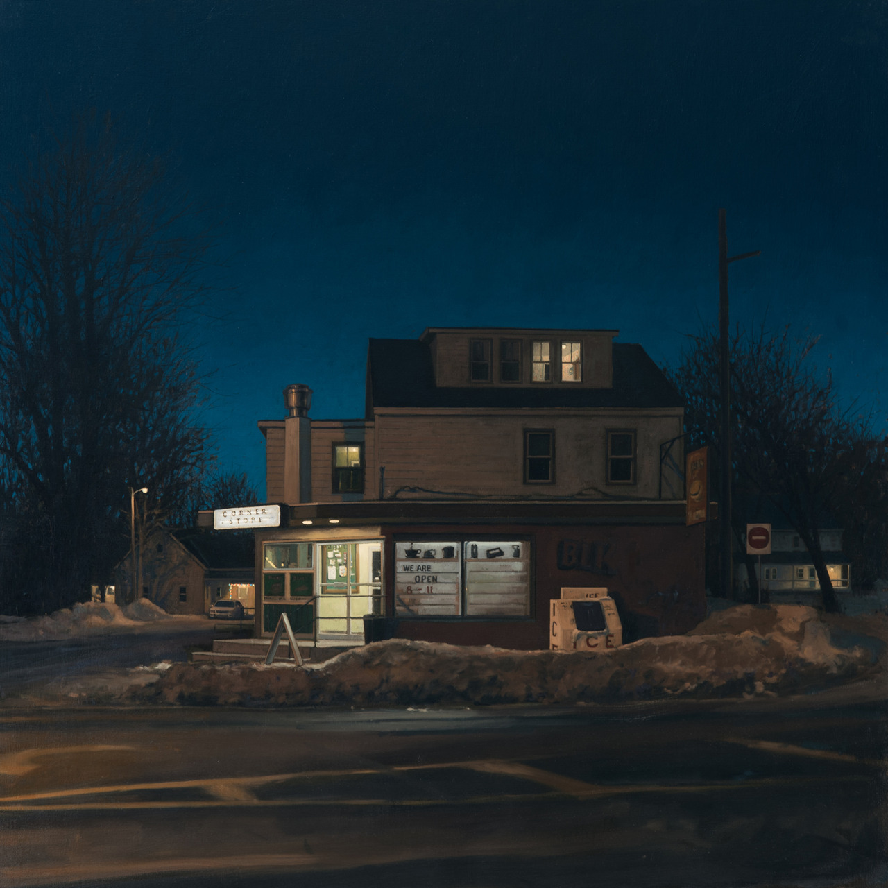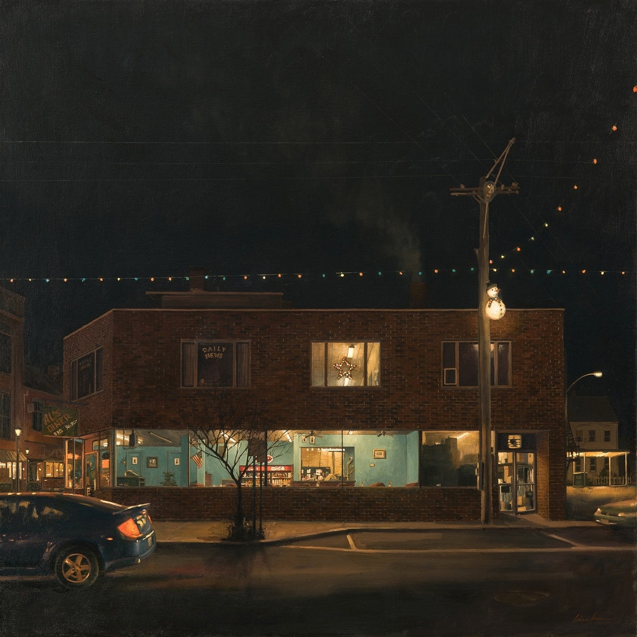 Linden Frederick (American, b. 1953, based Belfast, ME, USA) - Save-A-Lot, 2016 from Night Stories Paintings: Oil on Linen (Inspired the short story, Save-a-Lot, by Anthony Doerr)