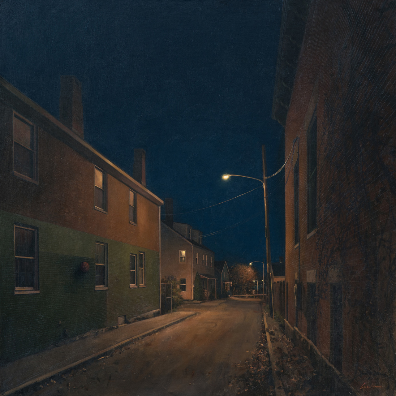 Linden Frederick (American, b. 1953, based Belfast, ME, USA) - Night Off, 2016 from Night Stories Paintings: Oil on Linen (Inspired the short story, Alley’s End, by Luanne Rice)