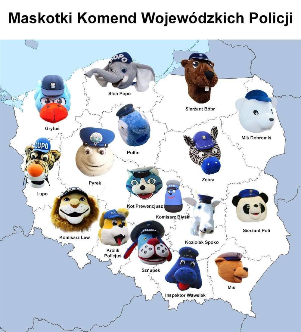 Mascots of police commands in Poland by voivedoship.