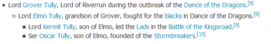 Me, an intellectual: George R.R. Martin named three successive generations of House Tully after Muppets.