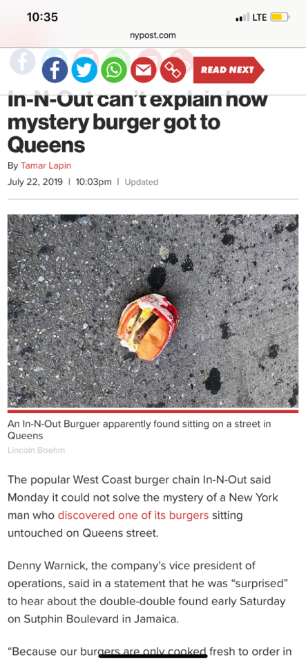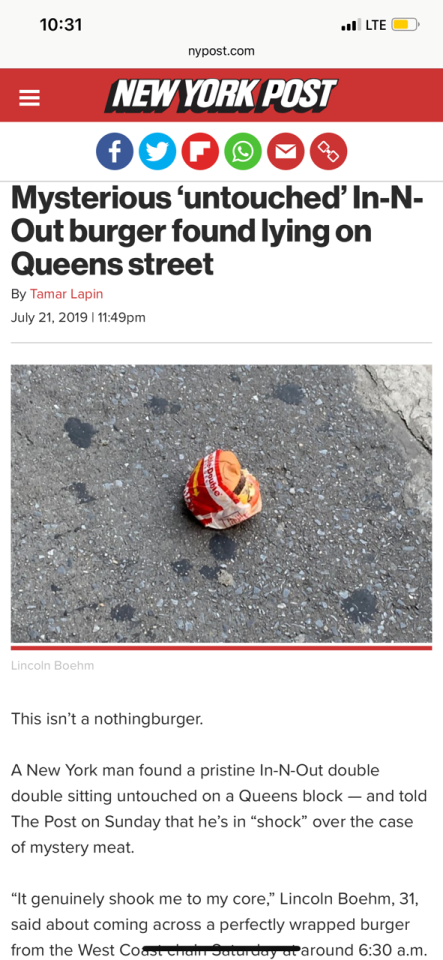 for reference, the nearest in n out to queens is in fort worth, texas. honestly if I found a perfectly-wrapped double double lying in the street more than a thousand miles from the nearest in n out location, I’d eat it. that’s a sign from a higher power. sucks without fries though