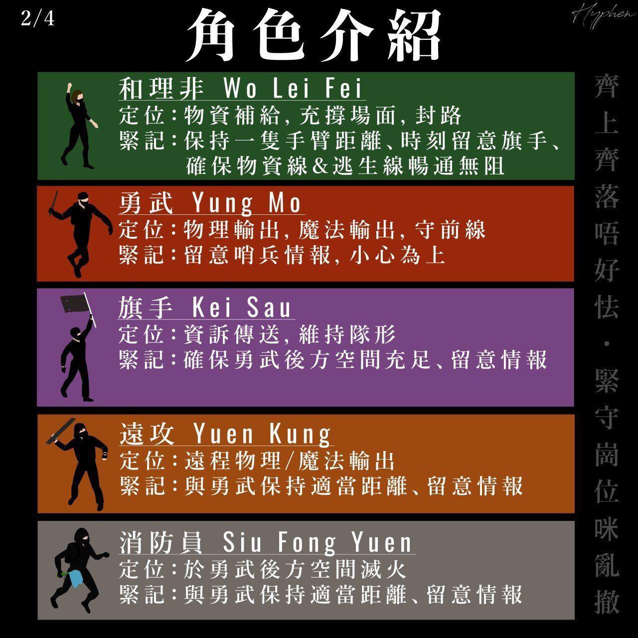 Hong Kong protests tactical handbook. This is some cool shit. 1 Wo Lei Fei Tasks : In-charge of providing critical resources...