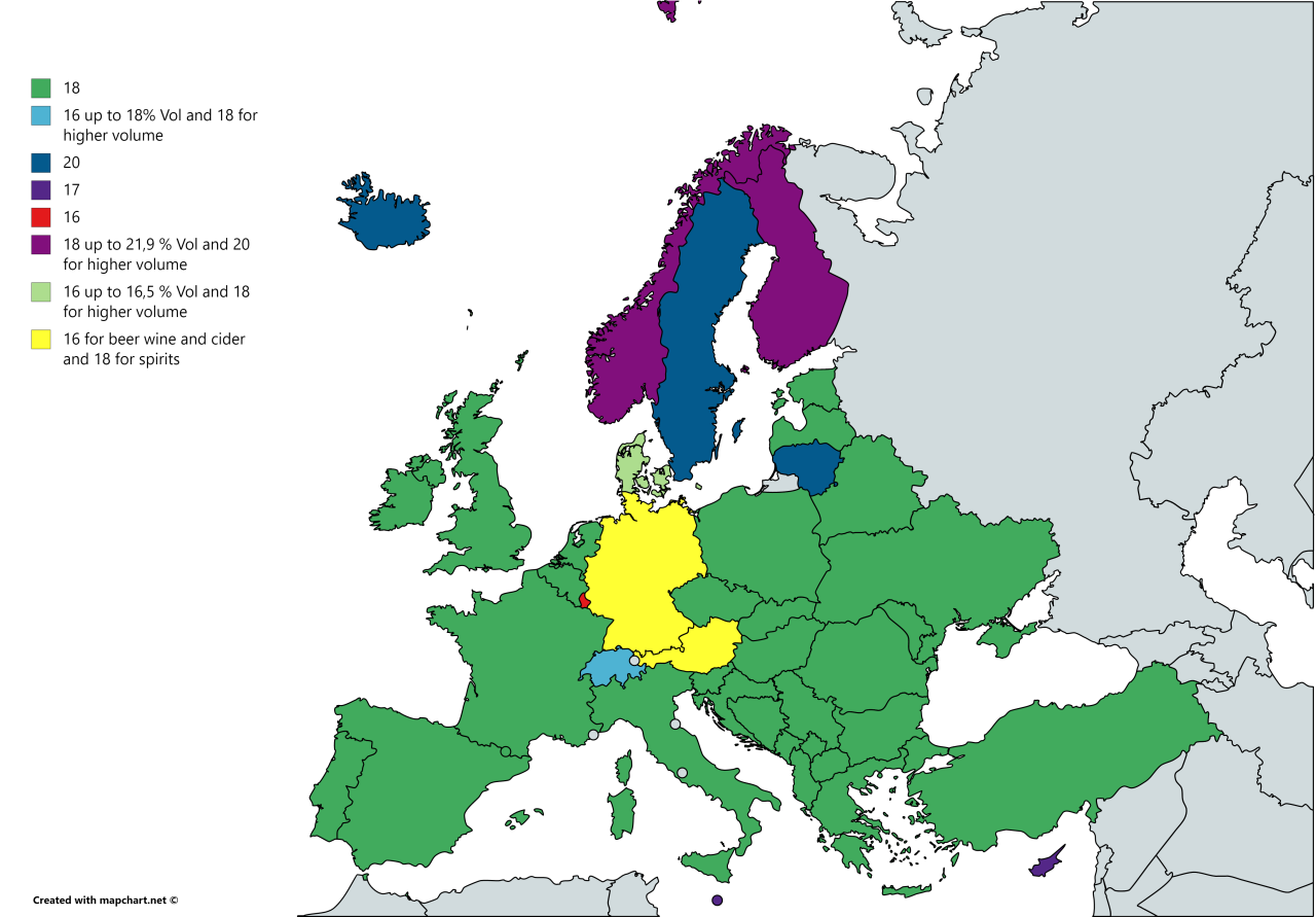 Age limit for purchasing alcohol in Europe