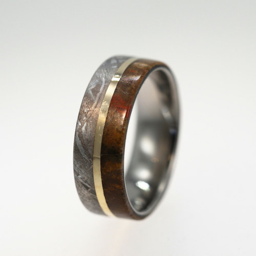 This is a ring made from dinosaur bone, meteorite, and gold.