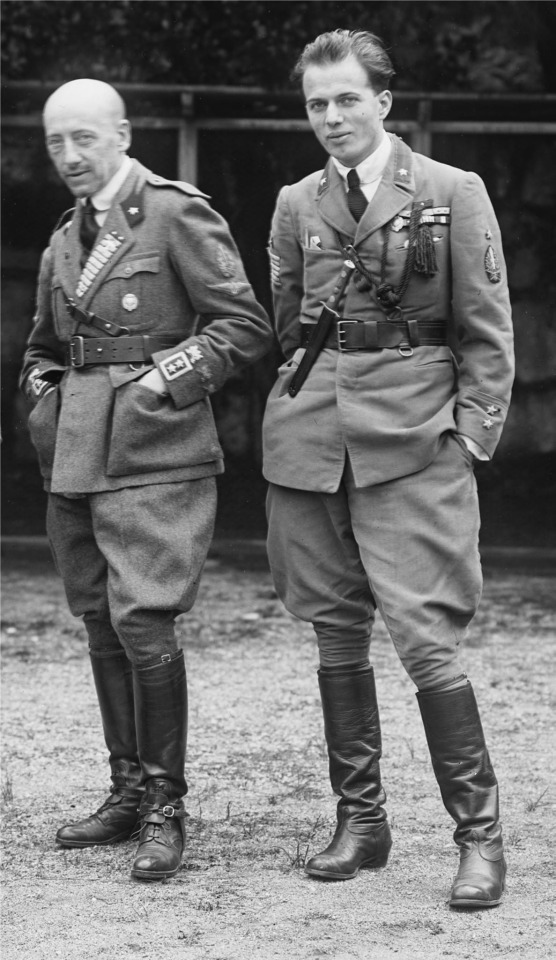 Gabriele D’Annunzio in Fiume. In 2nd pic he’s with Ulisse Igliori, the future founder of the Italian football team Roma (notice the dagger and the Arditi insignia on the sleeve).